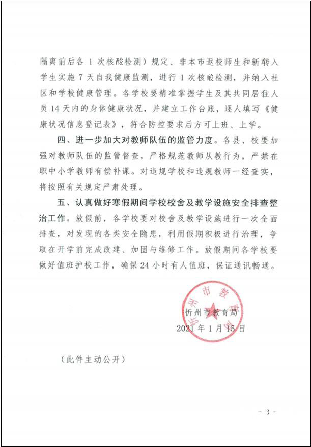 忻州市教育局關(guān)于做好全市各級各類學(xué)校2021年寒假放假有關(guān)工作的通知