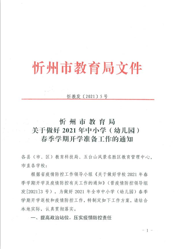忻州市教育局關(guān)于做好2021年中小學(xué)開(kāi)學(xué)準(zhǔn)備工作的通知