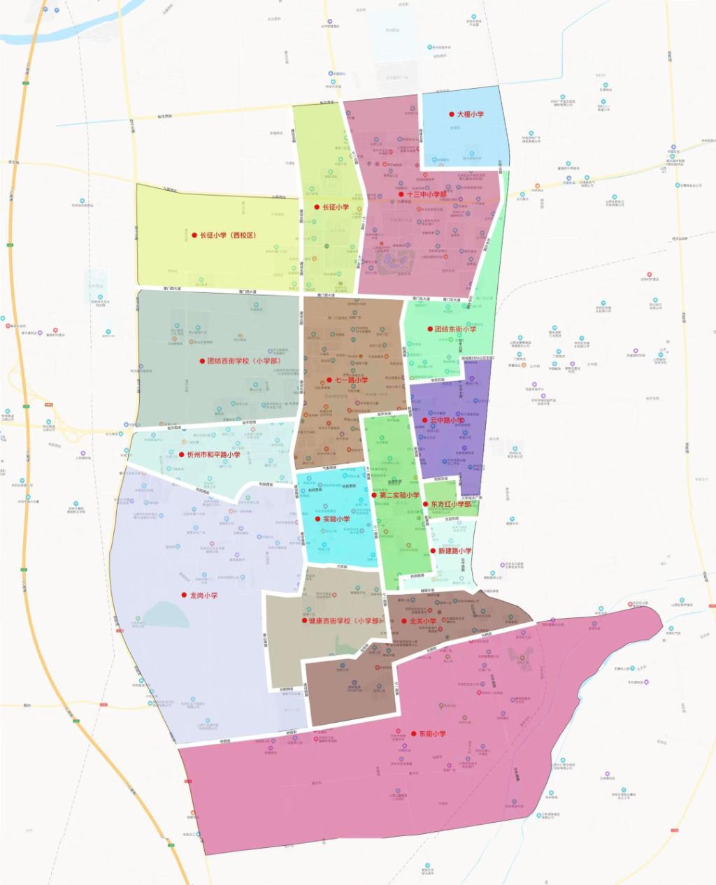 忻州市城區(qū)小學學校服務(wù)范圍圖