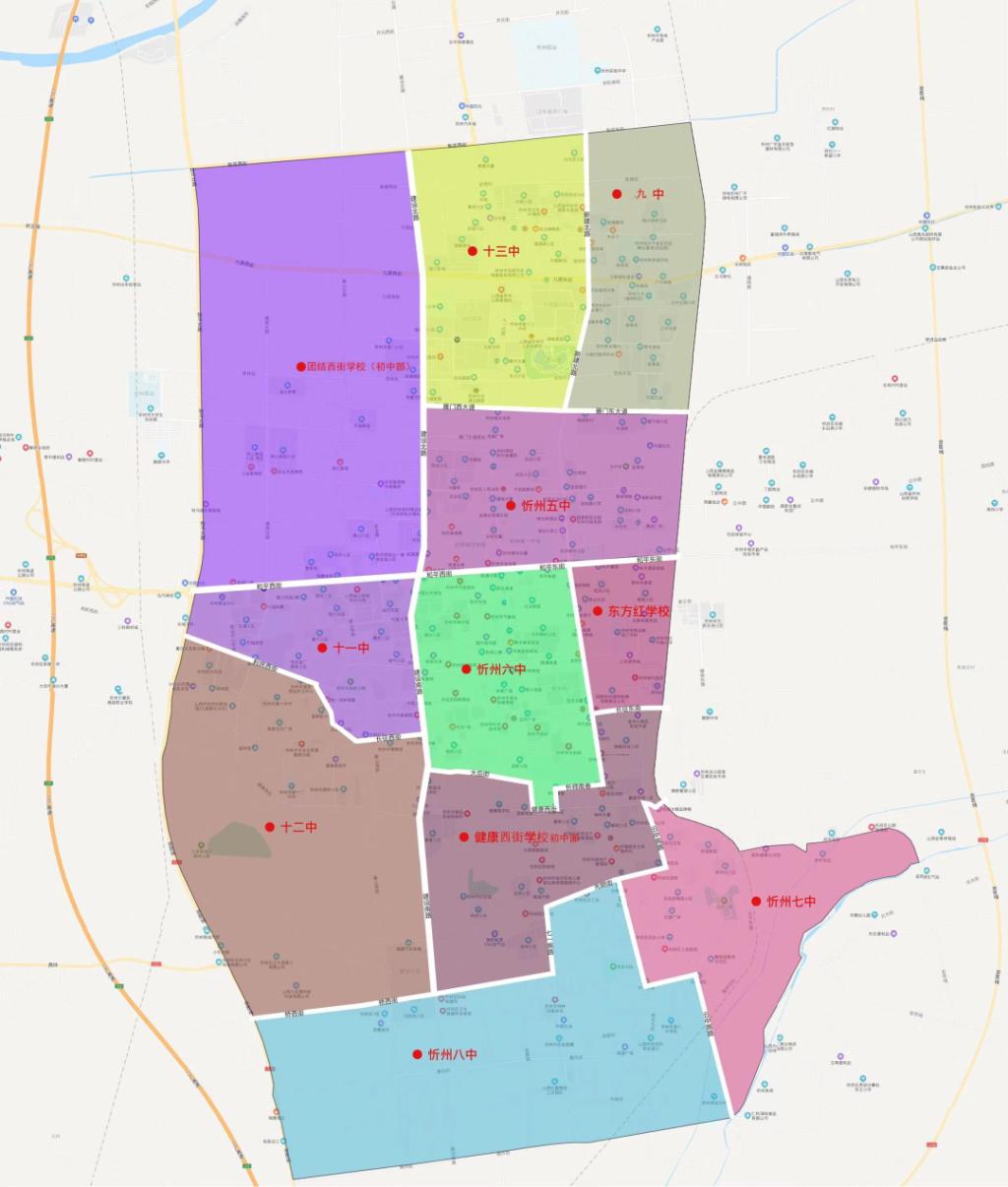 忻州市城區(qū)初中學校服務(wù)范圍圖