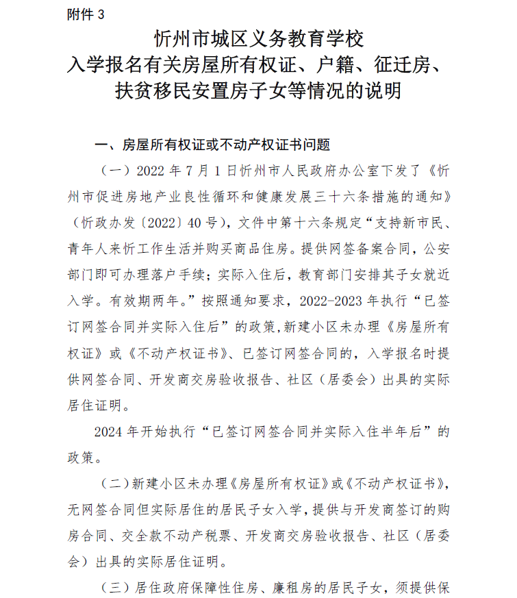 附:忻州市城區(qū)義務(wù)教育學校入學報名有關(guān)房屋所有權(quán)證、戶籍、征遷房、扶貧移民安置房子女等情況的說明