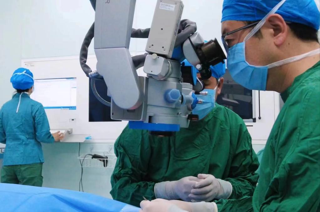 2024年2月19日,青海省人民醫(yī)院眼科副主任醫(yī)師祁恩在為青光眼患者手術(shù)。(受訪者供圖)