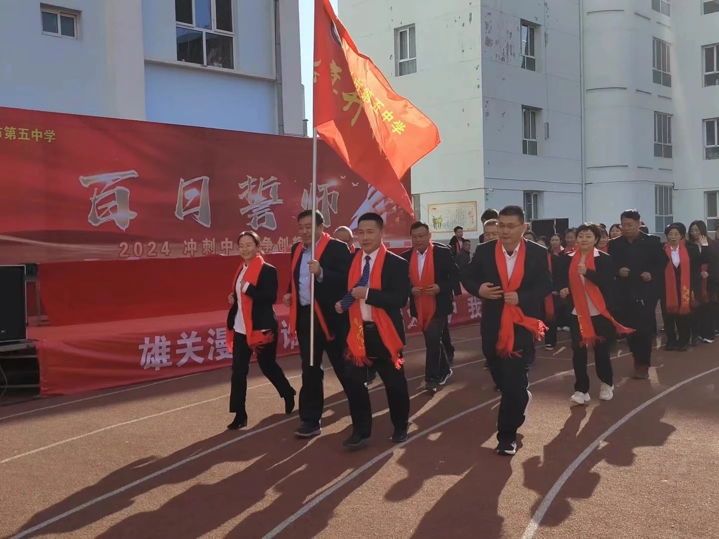 趙俊瑞校長(zhǎng)表示,在去年學(xué)校中考取得了優(yōu)秀的成績(jī),號(hào)召全體師生發(fā)揚(yáng)釘子精神,奮斗一百天,決勝一百天,勉勵(lì)在場(chǎng)同學(xué)們堅(jiān)定決心,不畏艱難,堅(jiān)持到底,激勵(lì)全體師生團(tuán)結(jié)一致,開(kāi)拓創(chuàng)新,努力奮斗,以科學(xué)的方法和良好的心態(tài)決勝中考戰(zhàn)場(chǎng)?!褒埿旋擙搯⑿鲁?,前程?hào)T朤向未來(lái)”,攻堅(jiān)克難,千錘百煉。風(fēng)雨兼程,無(wú)畏前行,在高質(zhì)量發(fā)展的道路上奮勇前進(jìn)。