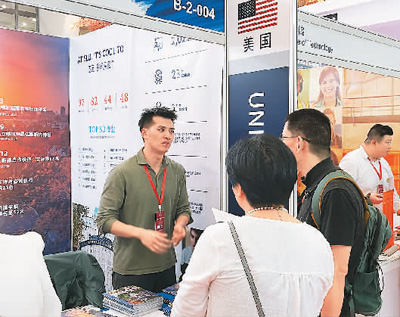 美國院校展區(qū),院校代表正在介紹信息。