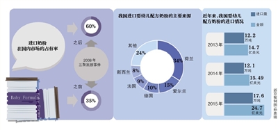 今年2月,中國海關發(fā)布的數(shù)據(jù)顯示,2015年我國進口嬰幼兒配方奶粉達到17.6萬噸,較2014年的12.1萬噸增加5.5萬噸,同比增長45%;進口嬰幼兒配方奶粉的價值達到24.7億美元,同比增長59.5%。