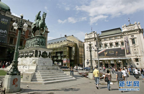 塞爾維亞米哈伊洛王子紀(jì)念碑和國家劇院(新華網(wǎng)發(fā))