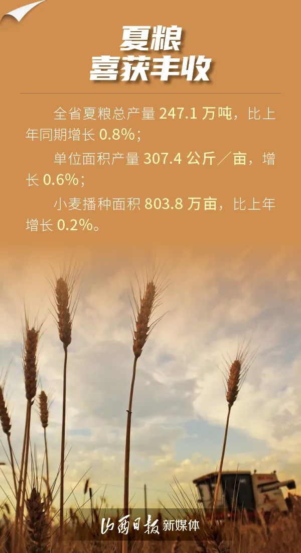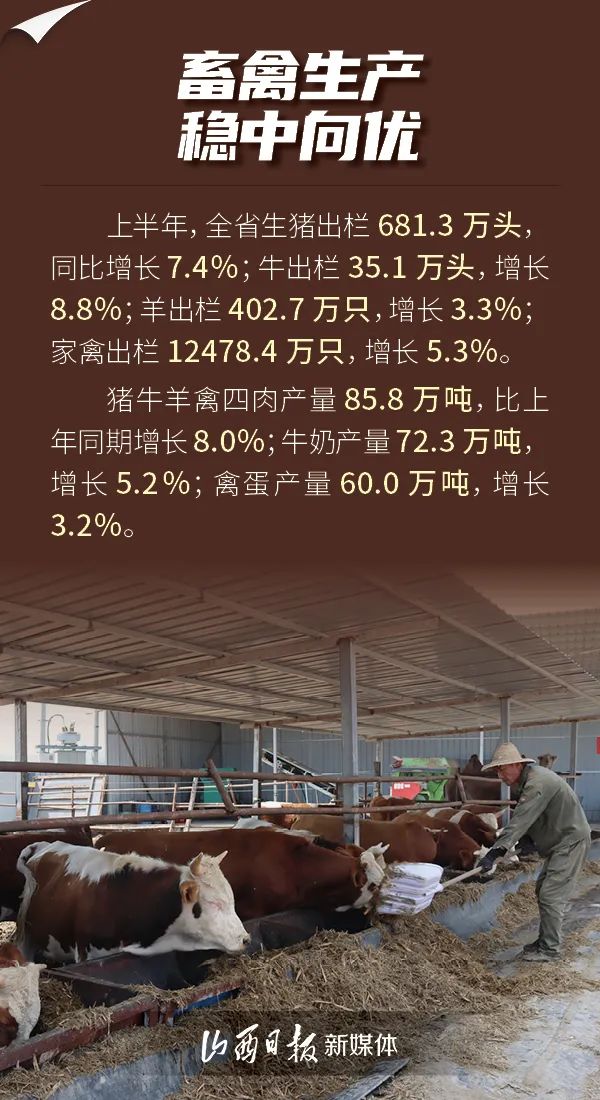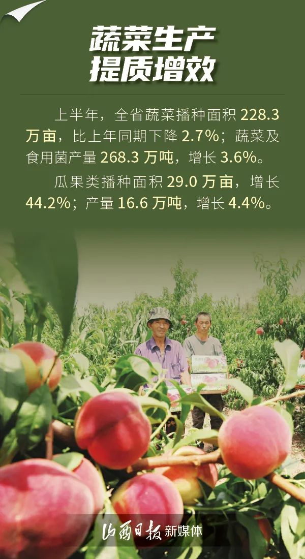 7月24日,山西省統(tǒng)計局發(fā)布數據,上半年,全省夏糧生產形勢良好,蔬菜生產提質增效,畜禽生產穩(wěn)中向優(yōu),漁業(yè)生產健康發(fā)展,全省農業(yè)生產成效顯著。