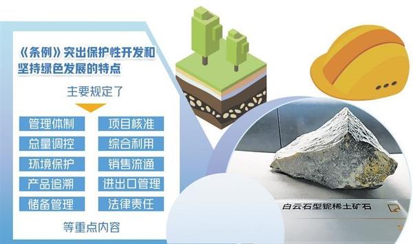 《稀土管理條例》(以下簡稱《條例》)日前公布,自2024年10月1日起施行。《條例》明確,稀土資源屬于國家所有,國家依法加強對稀土資源的保護(hù),對稀土資源實行保護(hù)性開采。同時,鼓勵和支持稀土產(chǎn)業(yè)新技術(shù)、新工藝、新產(chǎn)品、新材料、新裝備的研發(fā)和應(yīng)用,持續(xù)提升稀土資源開發(fā)利用水平,推動稀土產(chǎn)業(yè)高端化、智能化、綠色化發(fā)展。專家認(rèn)為,《條例》首次以行政立法形式規(guī)范稀土資源的開發(fā)利用,主要規(guī)定了管理體制、項目核準(zhǔn)、總量調(diào)控、綜合利用、環(huán)境保護(hù)、銷售流通、產(chǎn)品追溯、進(jìn)出口管理、儲備管理、法律責(zé)任等重點內(nèi)容,突出了保護(hù)性開發(fā)和堅持綠色發(fā)展的特點,對推動稀土產(chǎn)業(yè)高質(zhì)量發(fā)展具有重大意義。規(guī)范稀土資源開發(fā)利用稀土是現(xiàn)代工業(yè)中不可或缺的重要元素和關(guān)鍵戰(zhàn)略資源。中國有色金屬工業(yè)協(xié)會黨委書記、會長葛紅林表示,稀土被譽為“工業(yè)維生素”,是高新技術(shù)產(chǎn)業(yè)和國防科技工業(yè)的關(guān)鍵原料,是關(guān)系國家安全和國民經(jīng)濟(jì)命脈的戰(zhàn)略資源,對推動新型工業(yè)化發(fā)展具有不可替代性。中國稀土集團(tuán)黨委書記、董事長敖宏介紹,稀土是改造提升傳統(tǒng)產(chǎn)業(yè)、發(fā)展戰(zhàn)略性新興產(chǎn)業(yè)和國防科技工業(yè)不可或缺的關(guān)鍵材料。隨著新能源汽車、風(fēng)力發(fā)電、智能制造等戰(zhàn)略性新興產(chǎn)業(yè)和節(jié)能電機(jī)等傳統(tǒng)產(chǎn)業(yè)改造升級,全球稀土需求快速增加。近年來,我國圍繞稀土行業(yè)準(zhǔn)入標(biāo)準(zhǔn)、行業(yè)整合、環(huán)境保護(hù)等方面出臺了多項政策措施,產(chǎn)業(yè)發(fā)展良好,帶動建立起相對完整的產(chǎn)業(yè)體系,資源儲量、產(chǎn)量、消費量、貿(mào)易量均居世界第一位,并持續(xù)加強稀土資源保護(hù)開發(fā)和合理利用,為科技進(jìn)步和經(jīng)濟(jì)社會發(fā)展作出了突出貢獻(xiàn)。瞄準(zhǔn)新一輪科技革命和產(chǎn)業(yè)變革方向,我國加快稀土供給側(cè)結(jié)構(gòu)性改革,不斷開辟發(fā)展新領(lǐng)域新賽道、塑造發(fā)展新動能新優(yōu)勢,產(chǎn)業(yè)鏈不斷完善,產(chǎn)業(yè)規(guī)模不斷擴(kuò)大,產(chǎn)品品種不斷豐富,產(chǎn)品質(zhì)量不斷提高,市場規(guī)模不斷擴(kuò)大,國際影響力持續(xù)提升。但稀土管理仍存在一些突出問題,包括覆蓋全產(chǎn)業(yè)鏈的管理職責(zé)、監(jiān)管措施有待完善,產(chǎn)業(yè)創(chuàng)新能力和綠色化智能化水平亟需提高,行業(yè)秩序需要進(jìn)一步規(guī)范,整治非法開采或非法冶煉分離、無指標(biāo)或超指標(biāo)生產(chǎn)、買賣非法稀土產(chǎn)品等違法行為的手段不足、處罰力度不夠。隨著行業(yè)的不斷發(fā)展,產(chǎn)業(yè)鏈條的持續(xù)延伸,稀土產(chǎn)業(yè)缺少綜合性法律法規(guī)的問題日益凸顯,難以滿足行業(yè)高質(zhì)量發(fā)展需求。稀土行業(yè)涵蓋開采、冶煉分離、產(chǎn)品流通、二次利用、進(jìn)出口以及儲備等諸多環(huán)節(jié),涉及中央政府多個管理部門,亟需依法建立分工明確、密切配合的管理體制。葛紅林認(rèn)為,稀土產(chǎn)業(yè)大而不強、全而不精的問題依然存在,在制度保障銜接、資源保護(hù)性開發(fā)、原始基礎(chǔ)創(chuàng)新、行業(yè)秩序規(guī)范等方面仍面臨一些困難和挑戰(zhàn)?!疤貏e是在工藝綠色化、產(chǎn)品高端化、制造智能化方面有待提升,產(chǎn)業(yè)結(jié)構(gòu)要持續(xù)優(yōu)化,產(chǎn)業(yè)秩序需要進(jìn)一步規(guī)范?!卑胶暾f。推進(jìn)產(chǎn)業(yè)轉(zhuǎn)型升級包鋼(集團(tuán))公司黨委常委、副總經(jīng)理兼北方稀土黨委書記、董事長劉培勛認(rèn)為,《條例》為解決制約產(chǎn)業(yè)高質(zhì)量發(fā)展的堵點、難點開出了法治良方。完善了生態(tài)環(huán)境保護(hù)、資源儲備的有關(guān)規(guī)定,形成了更加科學(xué)有效的管理方式,更有利于稀土資源的保護(hù)性開發(fā);明確提出國家鼓勵科技創(chuàng)新和人才培養(yǎng),支持稀土新產(chǎn)品、新材料、新工藝的研發(fā)和產(chǎn)業(yè)化,更有利于稀土資源的高質(zhì)化利用;建立起從國家到地方再到企業(yè)分層管理、各司其職、各負(fù)其責(zé)的治理體系,并首次對違法違規(guī)行為設(shè)定處罰標(biāo)準(zhǔn),進(jìn)一步加壓引導(dǎo)行業(yè)秩序整頓,更有利于行業(yè)規(guī)范化管理?!稐l例》致力于促進(jìn)稀土產(chǎn)業(yè)高質(zhì)量發(fā)展。工業(yè)和信息化部原材料工業(yè)司相關(guān)負(fù)責(zé)人解讀,國家對稀土產(chǎn)業(yè)發(fā)展實行統(tǒng)一規(guī)劃,并突出科技創(chuàng)新。鼓勵和支持稀土產(chǎn)業(yè)新技術(shù)、新工藝、新產(chǎn)品、新材料、新裝備的研發(fā)和應(yīng)用。鼓勵和支持企業(yè)利用先進(jìn)適用技術(shù)、工藝對稀土二次資源進(jìn)行綜合利用。同時,實現(xiàn)綠色發(fā)展、安全生產(chǎn)。從事稀土開采、冶煉分離、金屬冶煉、綜合利用的企業(yè)應(yīng)當(dāng)遵守有關(guān)礦產(chǎn)資源、節(jié)能