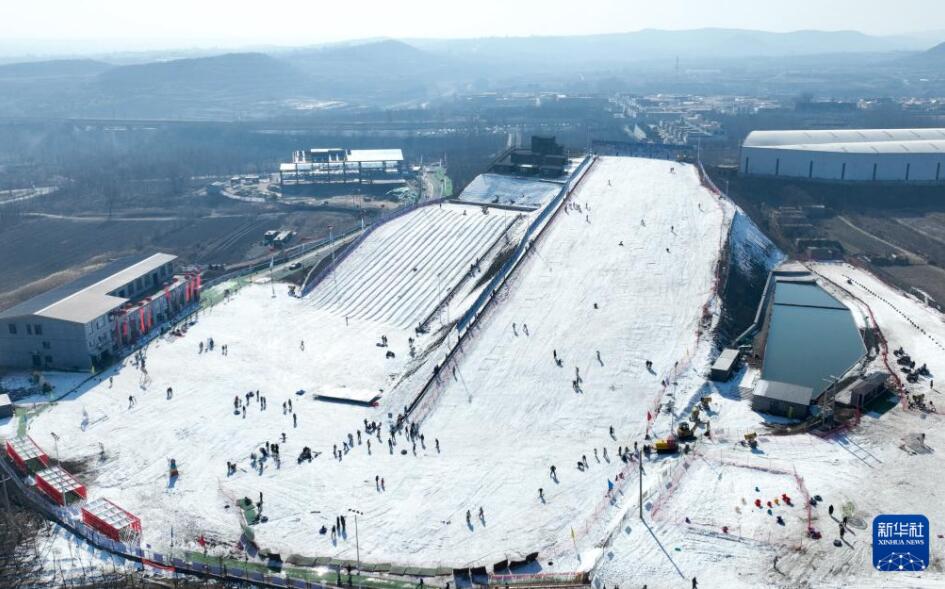 1月19日,游客在邯鄲市復(fù)興區(qū)東高河村滑雪場內(nèi)滑雪(無人機照片)。