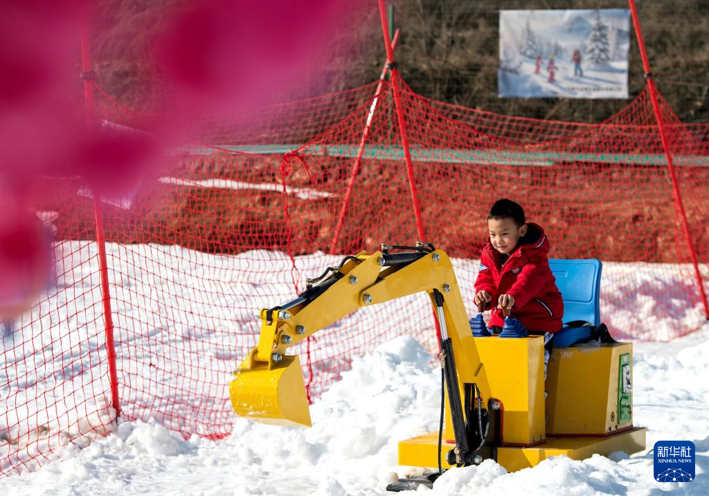 1月19日,在邯鄲市復(fù)興區(qū)東高河村滑雪場,小朋友在體驗雪地挖掘機項目。