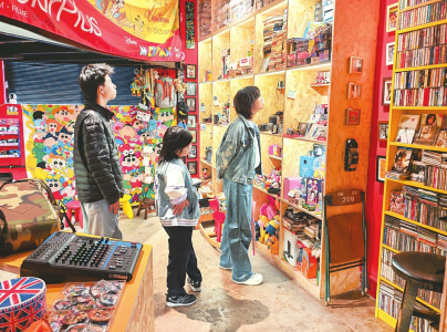十月二十日,一家三口在太原市開化寺古玩市場的樂多中古店選購二手相機(jī)、玩具。