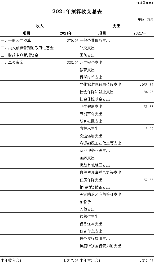 1、部門收支預(yù)算總表