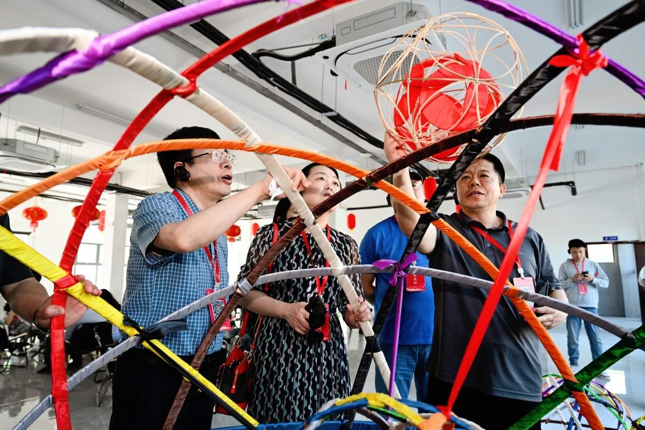 在“滾燈”文化公園,記者團(tuán)親身感受了一把“潮鄉(xiāng)”的“滾燈”藝術(shù)的魅力?!皾L燈”源自江南一帶的民間節(jié)日慶典,融合了舞蹈、技巧與體育精髓,愛(ài)好者展示給記者們的金港村“滾燈”,其制作工藝之考究讓大伙都嘖嘖贊嘆。