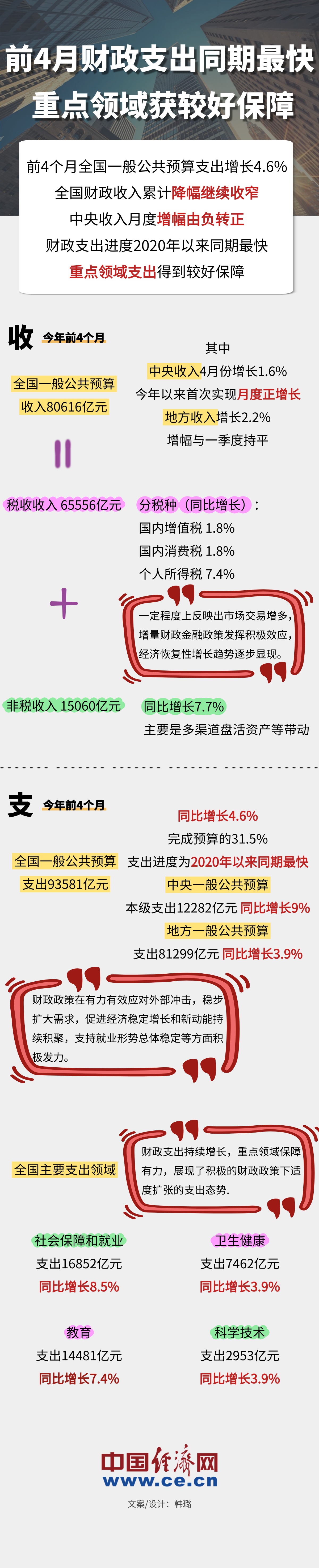 前4月財政支出同期最快 重點領(lǐng)域獲較好保障