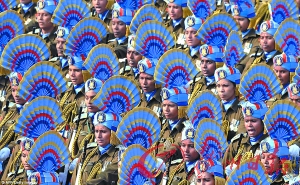 本月23日,印度舉行盛大閱兵儀式彩排,女兵搶鏡。