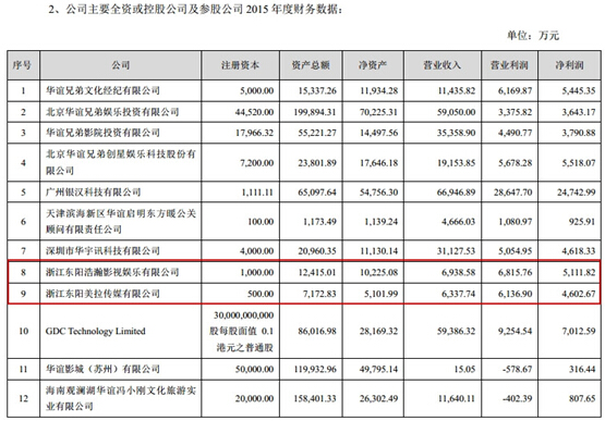 東陽浩瀚&東陽美拉2015年財(cái)務(wù)數(shù)據(jù)