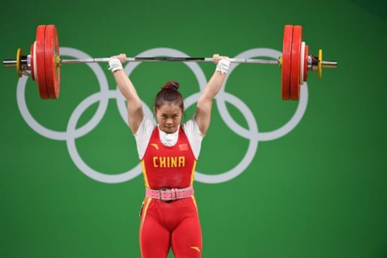 (圖為里約奧運會舉重女子63公斤級比賽中,中國選手鄧薇兩破世界紀錄并奪冠。新華社圖片)