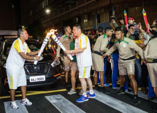 (圖為巴西境內進行的里約奧運火炬?zhèn)鬟f。新華社圖片)
