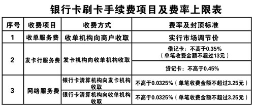銀行卡刷卡手續(xù)費項目及費率上限表。來自國家發(fā)改委網(wǎng)站