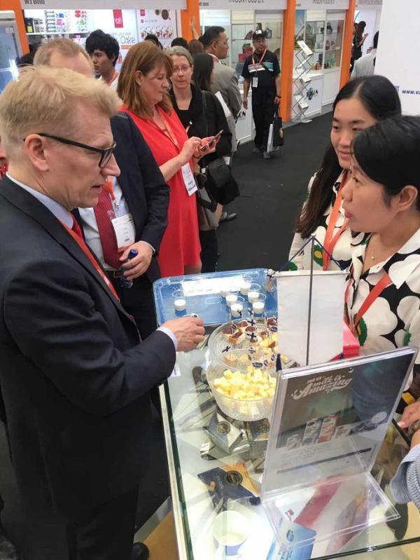 像索爾貝格之前的行為一樣,“中食展”活動現(xiàn)場,芬蘭環(huán)境部部長基莫·蒂利凱(Kimmo Tiilikainen)也“親身示范”,品嘗起芬蘭食物。在接受澎湃新聞采訪時,蒂利凱說道,對我們而言,中國是個極具吸引力的市場,我們有能滿足中國市場需求的食品門類,以及配套的電子商務(wù)服務(wù)措施。隨著中國人健康意識的增強,我們也在有意識地面向中國市場開發(fā)銷售健康食品。