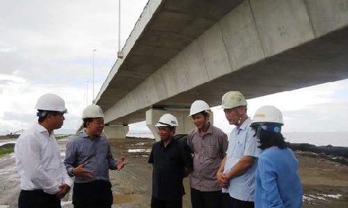 越南交通運輸部官員視察大橋建設(shè)項目。(圖片源自越南媒體)
