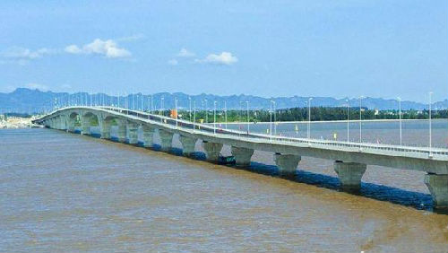 原本,這座大橋?qū)⒂诮衲?月底通車。它將成為東南亞地區(qū)最大的跨海大橋,設(shè)有6車道,時速達80公里。