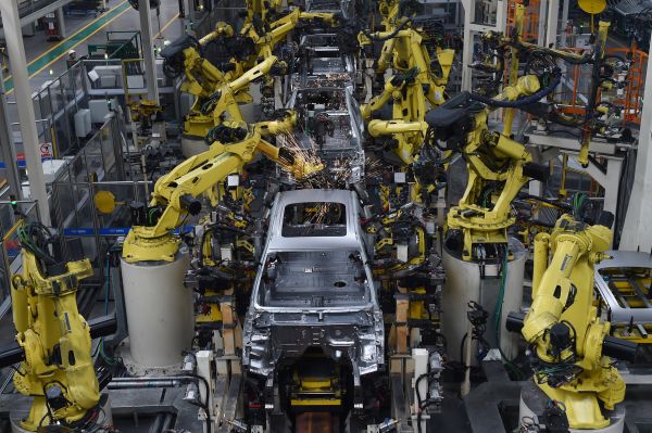 資料圖:吉利汽車寧波北侖春曉生產(chǎn)基地的焊裝車間。新華社記者 黃宗治 攝