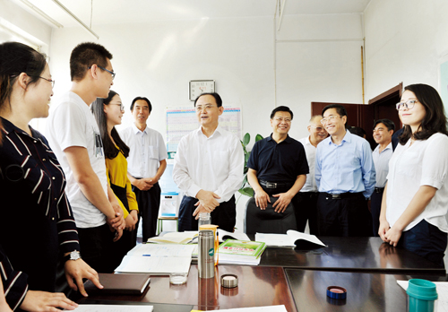 圖為市委書記李俊明在忻州一中看望教師。本報(bào)記者 劉紀(jì)森 攝
