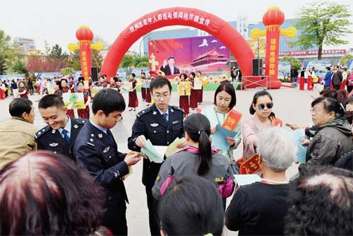 圖為公安民警在發(fā)放宣傳資料。 長(zhǎng)治久安,是人民對(duì)美好生活的向往,是人民公安矢志不忘的初心使命。 近年來(lái),一系列變化在忻州公安“深化平安忻州建設(shè)”的推力下悄然發(fā)生:“便民服務(wù)在線”讓數(shù)據(jù)多跑路,群眾少跑腿;戶口辦理更加順暢,群眾辦證不必東奔西跑;依托先進(jìn)的信息技術(shù),疑難案件一件件迅速告破;抬頭可見“天網(wǎng)”,低頭處處有“群防”,立體化治安防控讓群眾的安全感看得到、摸得著,群眾安全感、滿意度得到實(shí)實(shí)在在的提高。 這一切,源于忻州市公安局黨委在市委、市政府的堅(jiān)強(qiáng)領(lǐng)導(dǎo)下,在市委政法委的精心指導(dǎo)下,帶領(lǐng)全市公安機(jī)關(guān)和廣大公安民警深入學(xué)習(xí)貫徹黨的十九大精神,將習(xí)近平總書記提出的“對(duì)黨忠誠(chéng)、服務(wù)人民、執(zhí)法公正、紀(jì)律嚴(yán)明”總要求作為建警治警的總方略,始終把“ 平安忻州”建設(shè)放在公安工作的重要位置,立足于為忻州社會(huì)穩(wěn)定經(jīng)濟(jì)發(fā)展保駕護(hù)航,努力推動(dòng)忻州公安工作在新的歷史起點(diǎn)上開創(chuàng)新的局面。 在“對(duì)黨忠誠(chéng)”旗幟的引領(lǐng)下奮勇前行 “對(duì)黨忠誠(chéng)”是忻州公安的政治基因和責(zé)任擔(dān)當(dāng),只有心中有信仰,才能踏石留印。 2011年5月以來(lái),忻州市公安局黨委始終堅(jiān)持將政治建警擺在首位,嚴(yán)格遵守黨的政治紀(jì)律和政治規(guī)矩。深入推進(jìn)“ 兩學(xué)一做”學(xué)習(xí)教育,扎實(shí)開展“維護(hù)核心、見諸行動(dòng)”、“迎接十九大、忠誠(chéng)保平安”主題教育,使廣大民警將忠誠(chéng)銘刻在靈魂深處、融入到血脈里。 將紀(jì)律挺在前面。忻州市公安局制定出臺(tái)《中共忻州市公安局委員會(huì)關(guān)于進(jìn)一步貫徹落實(shí)中央八項(xiàng)規(guī)定精神的實(shí)施細(xì)則》等一系列規(guī)章制度;堅(jiān)決貫徹落實(shí)從嚴(yán)治黨、從嚴(yán)治警要求,加強(qiáng)民警廉潔教育,嚴(yán)格整肅警風(fēng)警紀(jì),努力鍛造人民滿意的鐵軍警隊(duì)。 人民公安為人民,是忻州公安的初心和使命。正是憑借著“ 對(duì)黨忠誠(chéng)”堅(jiān)定信念,廣大忻州公安人獲得了砥礪前行的不竭動(dòng)力。 人民不會(huì)忘記,百姓的貼心人駱國(guó)泉、追逃英雄崔艷陽(yáng)、愛民模范孫衛(wèi)星……正是以他們?yōu)榇淼男弥莨踩?,用忠誠(chéng)和堅(jiān)守筑起秀容大地社會(huì)穩(wěn)定、人民平安的基石。 捷報(bào)頻傳,于2017年5月19日在北京召開的全國(guó)公安系統(tǒng)英雄模范立功集體表彰大會(huì)上,忻州市公安局直屬分局榮獲“全國(guó)優(yōu)秀公安局”榮譽(yù)稱號(hào),警犬基地榮獲“全國(guó)優(yōu)秀基層單位”榮譽(yù)稱號(hào)。12月,忻州市公安局、靜樂(lè)縣公安局被山西省人力資源和社會(huì)保障廳、山西省社會(huì)治安綜合治理委員會(huì)評(píng)為2013至2016年度“全省社會(huì)治安綜合治理先進(jìn)集體”。 深化改革,把人民滿意作為奮斗目標(biāo) “惟改革者進(jìn),惟創(chuàng)新者強(qiáng),惟改革創(chuàng)新者勝!”幾年來(lái),忻州市公安局黨委以強(qiáng)有力的決心、意志和膽魄,積極推動(dòng)警務(wù)機(jī)制的創(chuàng)新與改革,努力做公安改革的“實(shí)干家”,讓改革成果提升隊(duì)伍戰(zhàn)斗力。 2014年2月,忻州市公安局實(shí)施了新型巡邏防控體系,率先組建了全省第一支PTU機(jī)動(dòng)巡邏隊(duì)和SDU突擊隊(duì),成為一支集巡邏防控、打擊違法犯罪、服務(wù)群眾于一體的綜合戰(zhàn)斗實(shí)體。新體制運(yùn)行后,PTU出警速度加快、派出所民警負(fù)擔(dān)減輕、街面違法犯罪行為大幅減少,一些苗頭性事件得以及時(shí)化解。 讓“大數(shù)據(jù)”在基層實(shí)戰(zhàn)中釋放強(qiáng)大能量。市公安局在傳統(tǒng)偵查模式基礎(chǔ)上,創(chuàng)新機(jī)制,建立偵查合成作戰(zhàn)中心,打破了部門壁壘,集中公安綜合信息資源庫(kù)和豐富的社會(huì)數(shù)據(jù)資源,以警務(wù)“大數(shù)據(jù)”、“云計(jì)算”支撐起超強(qiáng)作戰(zhàn)綜合實(shí)力,并在偵破一系列有影響的大要案件中得到檢驗(yàn)。2017年9月,忻州公安首次在“獵狐行動(dòng)”中從緬甸成功抓獲涉嫌系列詐騙案犯罪嫌疑人張某龍。 2016年10月,在全省率先建成銀行專線接入、多部門集中辦公的市反欺詐中心,中心運(yùn)行一年多來(lái),成功止付811.1萬(wàn)元,為群眾挽回經(jīng)濟(jì)損失205萬(wàn)余元。根據(jù)數(shù)據(jù)統(tǒng)計(jì),2017年全市破獲電信詐騙案件623起,同比上升709%,抓獲犯罪嫌疑人55名,同比上升511%,初步實(shí)現(xiàn)了“兩降兩升”。 群眾的滿意來(lái)源于優(yōu)質(zhì)的服務(wù)。為讓更多群眾享受到公安改革的“紅利”,忻州公安不斷推出惠民、便民、利民新舉措。 實(shí)行“透明式”辦公,通過(guò)各主流媒體將市縣公安局長(zhǎng)、具有審批權(quán)限部門負(fù)責(zé)人以及戶籍民警的手機(jī)號(hào)碼全部向群眾公布,方便群眾監(jiān)督、辦事。 深化“放管服”,化繁為簡(jiǎn),將能下放的業(yè)務(wù)審批權(quán)限下放到基層。幾年來(lái),忻州市公安局先后下放了戶