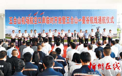 圖為五臺山機場航空口岸臨時開放暨五臺山——曼谷航線通航儀式現(xiàn)場。