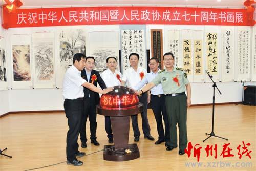 省人大常委會(huì)副主任、市委書記李俊明,省政協(xié)副主席席小軍,市人大常委會(huì)主任王珍,市政協(xié)主席劉鋼柱,市委常委、宣傳部長(zhǎng)陳義青,市委常委、秘書長(zhǎng)崔建新,忻州軍分區(qū)司令員李志強(qiáng),忻州師范學(xué)院院長(zhǎng)張虎芳,副市長(zhǎng)安書田,市政協(xié)副主席王慶榮、高志偉、黃登宇、吳培英,市人大常委會(huì)秘書長(zhǎng)張?zhí)m軍,市政府秘書長(zhǎng)郭寶厚,市政協(xié)秘書長(zhǎng)王志剛,已退休的市政協(xié)老領(lǐng)導(dǎo)范懷成、張明成、楊學(xué)書、王志勇等,太原、陽(yáng)泉、晉中市政協(xié)領(lǐng)導(dǎo)及著名書畫家代表出席開(kāi)展儀式。忻州籍著名軍旅書畫家郭明高、劉傳光、張全美,國(guó)家一級(jí)美術(shù)師、中國(guó)美術(shù)家協(xié)會(huì)會(huì)員、廣西桂林的龍山農(nóng)先生等應(yīng)邀出席了開(kāi)展儀式。劉鋼柱宣布書畫展開(kāi)展,李俊明、席小軍、郭明高、王珍、劉鋼柱、李志強(qiáng)一起觸動(dòng)啟動(dòng)球。王志剛主持開(kāi)展儀式,高志偉致辭。
