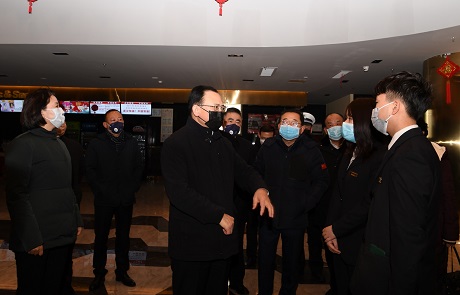 省人大常委會副主任、市委書記李俊明在開萊橫店影城檢查娛樂場所暫停營業(yè)執(zhí)行情況 本報記者 劉紀(jì)森