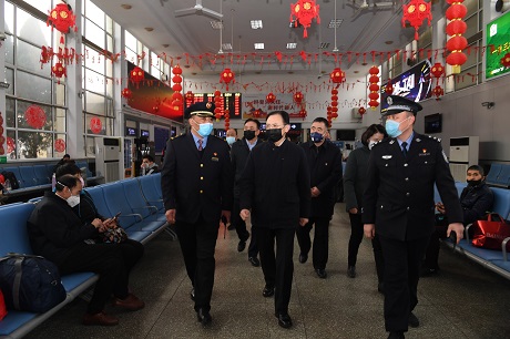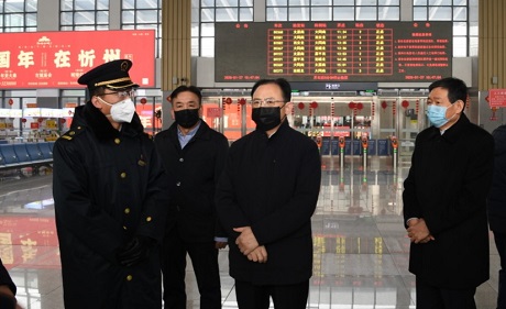 省人大常委會副主任、市委書記李俊明在火車站檢查督導(dǎo)疫情防控措施準(zhǔn)備情況 本報記者 劉紀(jì)森