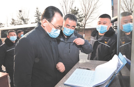 圖為2月20日,省人大常委會副主任、市委書記、市疫情防控工作領導小組組長李俊明在禹王煤炭氣化公司督導調研企業(yè)疫情防控、復工復產(chǎn)和重點項目建設情況。本報記者 宮愛文 攝