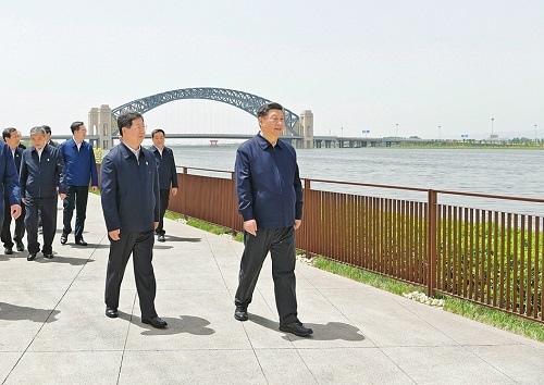 5月12日中午,習(xí)近平在汾河太原城區(qū)晉陽(yáng)橋段考察汾河水治理及沿岸生態(tài)保護(hù)、城市環(huán)境建設(shè)等情況。