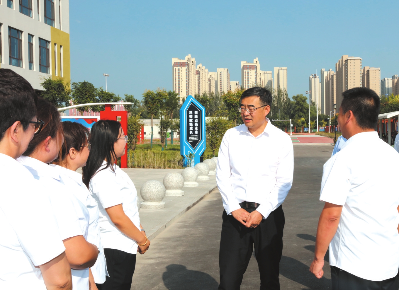 經(jīng)過幾年來在教育領(lǐng)域的連續(xù)投入,我市的學(xué)校布局優(yōu)化、校舍新建改造、設(shè)施更新提升、教師人才充實(shí)等工作成效逐步顯現(xiàn),一批新校園、新校舍、新設(shè)施等紛紛啟用,成為忻州高質(zhì)量發(fā)展的潛力所在。李建國一行在各個(gè)學(xué)??赐繂栆痪€教師職工,察看改造中或已啟用的操場、建成啟用的教學(xué)樓和多功能教室等設(shè)施,耐心詢問新校區(qū)教師的切身感受、通勤等工作生活情況,詳細(xì)了解學(xué)校的服務(wù)半徑、師資力量、薪酬待遇等情況,感謝廣大教師扎根三尺講臺(tái)、傳道授業(yè)解惑,引導(dǎo)一屆屆學(xué)生樹立崇高理想和遠(yuǎn)大志向,為忻州教育事業(yè)作出的無私奉獻(xiàn)。