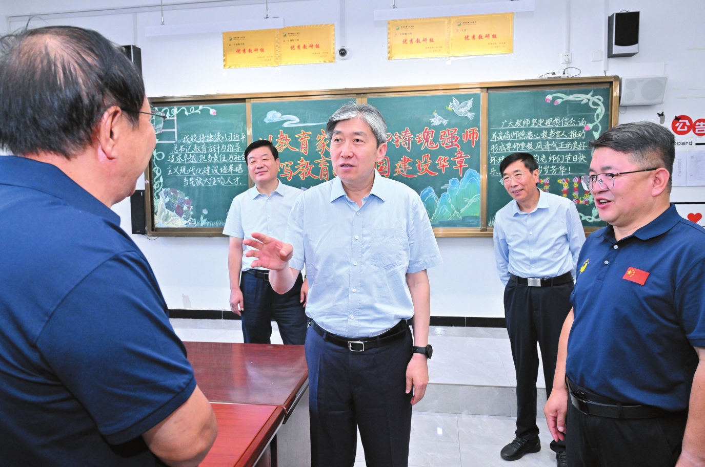 市委副書記、市長李建國在忻州市第五中學(xué)慰問一線教師。本報(bào)記者范濤攝