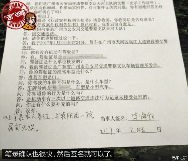 把分?jǐn)?shù)處理完后,心里算是松了一口氣,終于到了最后一步:取證。當(dāng)時(shí)被扣行駛證,我問(wèn)在場(chǎng)的交警除了把違章處理完,還需要帶什么證件過(guò)去。記得他當(dāng)時(shí)的回答是帶上身份證、駕駛證以及行駛證被扣留的憑證即可。所以在確認(rèn)違章完全處理完畢后,我就帶上上述提到的證件和材料去了天河交警大隊(duì)交通違法處理室,可卻無(wú)功而返。