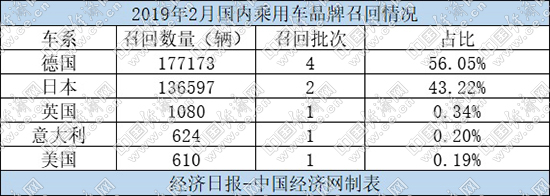 分車(chē)系來(lái)看,3月,德系和日系累計(jì)召回汽車(chē)數(shù)量占召回總量多達(dá)99.27%。其中,德系共4個(gè)品牌累計(jì)召回汽車(chē)177173輛,占召回總量的56.05%,數(shù)量最多;日系共2個(gè)品牌累計(jì)召回汽車(chē)136597輛,占比43.22%;此外,英國(guó)、意大利、美國(guó)各有一品牌發(fā)布了召回公告,但三車(chē)系總共召回?cái)?shù)量不足總量的1%。值得注意的是,繼2月之后,3月仍無(wú)自主品牌發(fā)布召回信息。