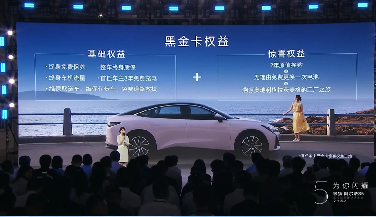 阿爾法S5交付的同時,“三巨頭”還為首批用戶帶來價值不菲的黑金卡權(quán)益,包括終身免費(fèi)保養(yǎng)、首任車主3年免費(fèi)充電、免費(fèi)道路救援,以及2年原值換購、無理由免費(fèi)更換一次電池、溯源奧地利格拉茨麥格納工廠之旅等實打?qū)嵉暮枚Y,并且此后還將定期抽取幸運(yùn)用戶持續(xù)發(fā)放黑金卡權(quán)益,開創(chuàng)汽車行業(yè)交付價值感的新境界。