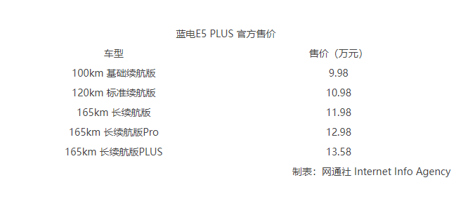藍(lán)電E5 PLUS正式上市 售價(jià)9.98萬(wàn)-13.58萬(wàn)元