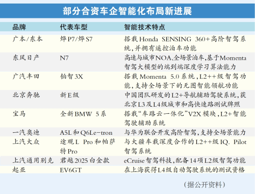 在業(yè)內人士看來,這并非偶然。從時間軸上看,在經歷了多年“上車困難”、研發(fā)成本高等轉型陣痛后,合資車企通過加快步伐,與本土科技企業(yè)合作,開始在高階智能駕駛領域迎頭趕上,縮小與自主品牌的差距。“從電動車到燃油車,從智駕系統到‘大彩電’,合資車企的智電轉型正在提速?!?/p>