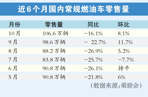 乘聯分會發(fā)布的數據顯示,今年10月常規(guī)燃油車零售106.6萬輛,環(huán)比增長8.1%。乘聯會秘書長崔東樹表示:“燃油車零售回暖是支撐車市整體向上的基礎之一,‘以舊換新’政策釋放的換購需求,更在一定程度上帶動燃油車銷量的增長?!敝档米⒁獾氖?,2025年補貼政策或仍將持續(xù),這對油車也是很好的提振銷量的機會。