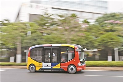 無人駕駛巴士 廣州日?qǐng)?bào)全媒體記者陳憂子 攝