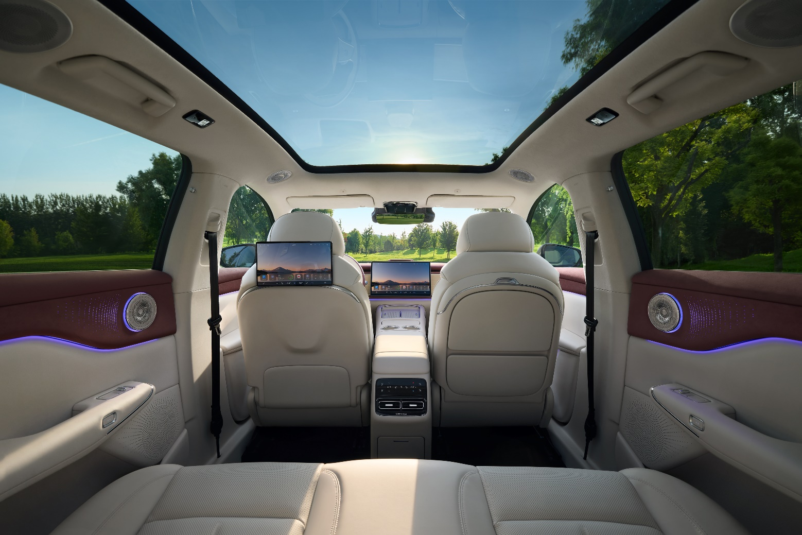全新嵐圖知音外觀、尺寸大幅升級(jí),由雙方技術(shù)團(tuán)隊(duì)對(duì)智能駕駛、智能座艙、智能底盤(pán)、三電系統(tǒng)與座艙舒適性五大板塊進(jìn)行調(diào)適,僅華為相關(guān)功能便實(shí)現(xiàn)了超百項(xiàng)體驗(yàn)升級(jí),90.8%得房率刷新了行業(yè)紀(jì)錄,2925mm超長(zhǎng)軸距、5.2㎡超大實(shí)用空間、1038mm后排腿部空間,足以讓身高1.8米的乘客輕松翹起二郎腿。