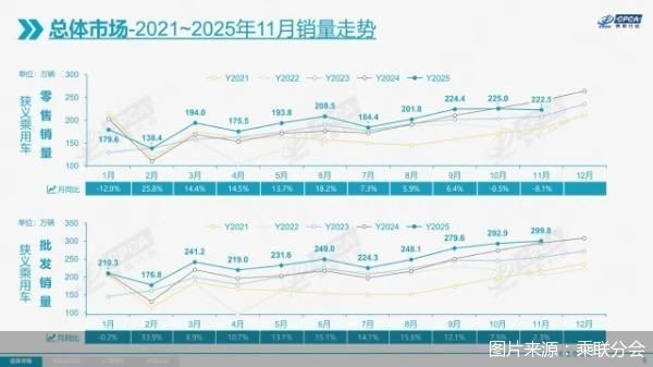 車市正進(jìn)入平穩(wěn)發(fā)展階段。12月8日,中國汽車流通協(xié)會乘用車市場信息聯(lián)席分會(以下簡稱“乘聯(lián)分會”)發(fā)布的數(shù)據(jù)顯示,2025年前11個(gè)月零售2148.3萬輛,整體保持增長。不過,今年11月車市零售量同比、環(huán)比均出現(xiàn)下滑?!?1月乘用車市場銷量環(huán)比出現(xiàn)下降,是比較少見的?!背寺?lián)分會秘書長崔東樹認(rèn)為,今年上半年,我國乘用車市場銷量實(shí)現(xiàn)較快增長,下半年車市增長需回到合理、穩(wěn)定的狀態(tài)。車市進(jìn)入平穩(wěn)期有利于市場長期穩(wěn)定發(fā)展,預(yù)計(jì)今年零售將增長5%。