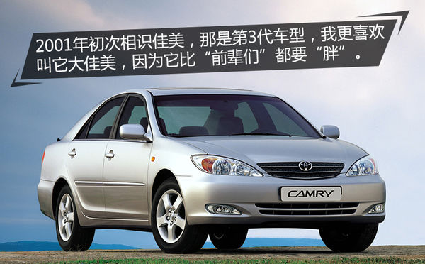 說起來,筆者與凱美瑞應(yīng)該算是“老熟人”了,最初的緣分要回憶到上初中的時候,那時候凱美瑞還是進(jìn)口車,那時候他被人們稱作“佳美”。2001那年筆者在念初三(額~~一不小心暴露了年齡),姑姑家買了一輛銀灰色的豐田佳美,那時候還不太懂車,只知道能坐上30多萬的車是一件非常值得吹牛逼的事情。