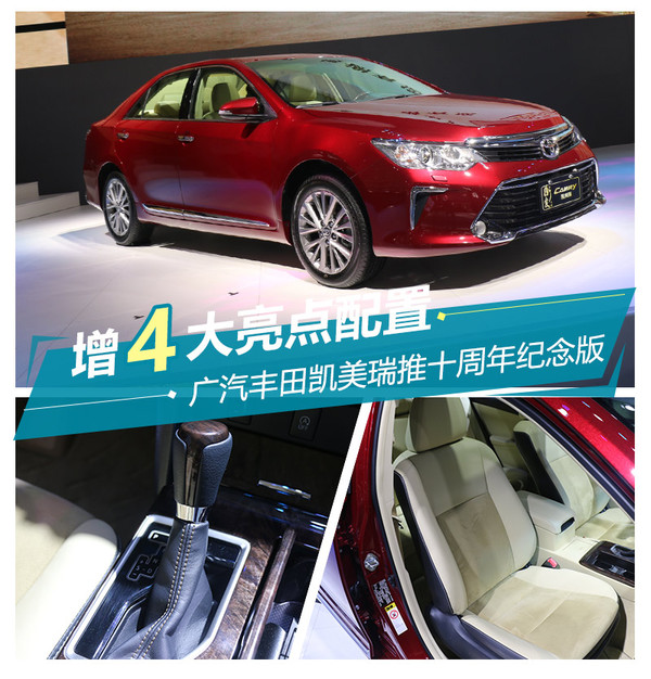 廣汽豐田凱美瑞自2006年登陸中國并實(shí)現(xiàn)國產(chǎn)以來,十年間這款車型在華累計銷量已突破150萬輛,并且是同級別車型中以最快速度完成這一目標(biāo)的。恰逢凱美瑞在華投產(chǎn)、銷售十周年之際,廣汽豐田在長春車展上發(fā)布凱美瑞十周年紀(jì)念版車型。相比現(xiàn)款凱美瑞,新車實(shí)現(xiàn)了4大配置升級,其中包括自動啟停、雙透鏡LED大燈在內(nèi)的多項細(xì)節(jié)提升,新車預(yù)計將在8月中旬到店上市。
