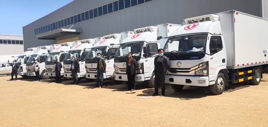 4月,97輛東風(fēng)多利卡冷藏車交付貴州