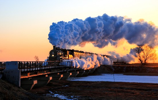 蒼茫原野上,汽笛的轟鳴打破寂靜,一列蒸汽機車緩緩而來。